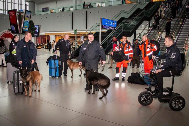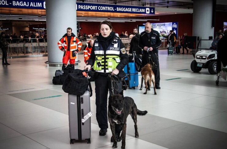 Almanya’dan gelen özel eğitimli arama kurtarma köpekleri ile birlikte bir grup polis memuru İstanbul’da Başkonsolos Johannes Regenbrecht tarafından karşılandı.