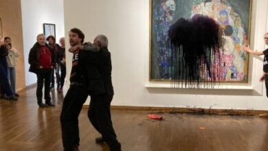 Avusturya’da iklim aktivistleri, ressam Klimt’in tablosuna siyah boya fırlattı