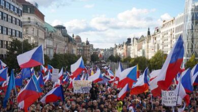 ÇEKYA’NIN BAŞKENTİ PRAG’DA BİNLERCE KİŞİ, HÜKÜMETİN ENERJİ POLİTİKALARINI PROTESTO EDEREK İSTİFASINI İSTEDİ.