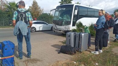 Havalimanına turistleri taşıyan midibüs karşı şeride geçti, kaza ucuz atlatıldı