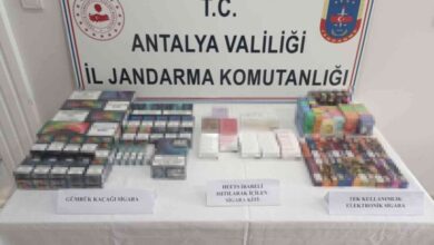 ANTALYA’NIN MANAVGAT İLÇESİNDEKİ BİR MARKETTE PİYASA DEĞERİ YAKLAŞIK 44 BİN TL OLAN KAÇAK SİGARA, ELEKTRONİK SİGARA VE SİGARA KİTİ ELE…
